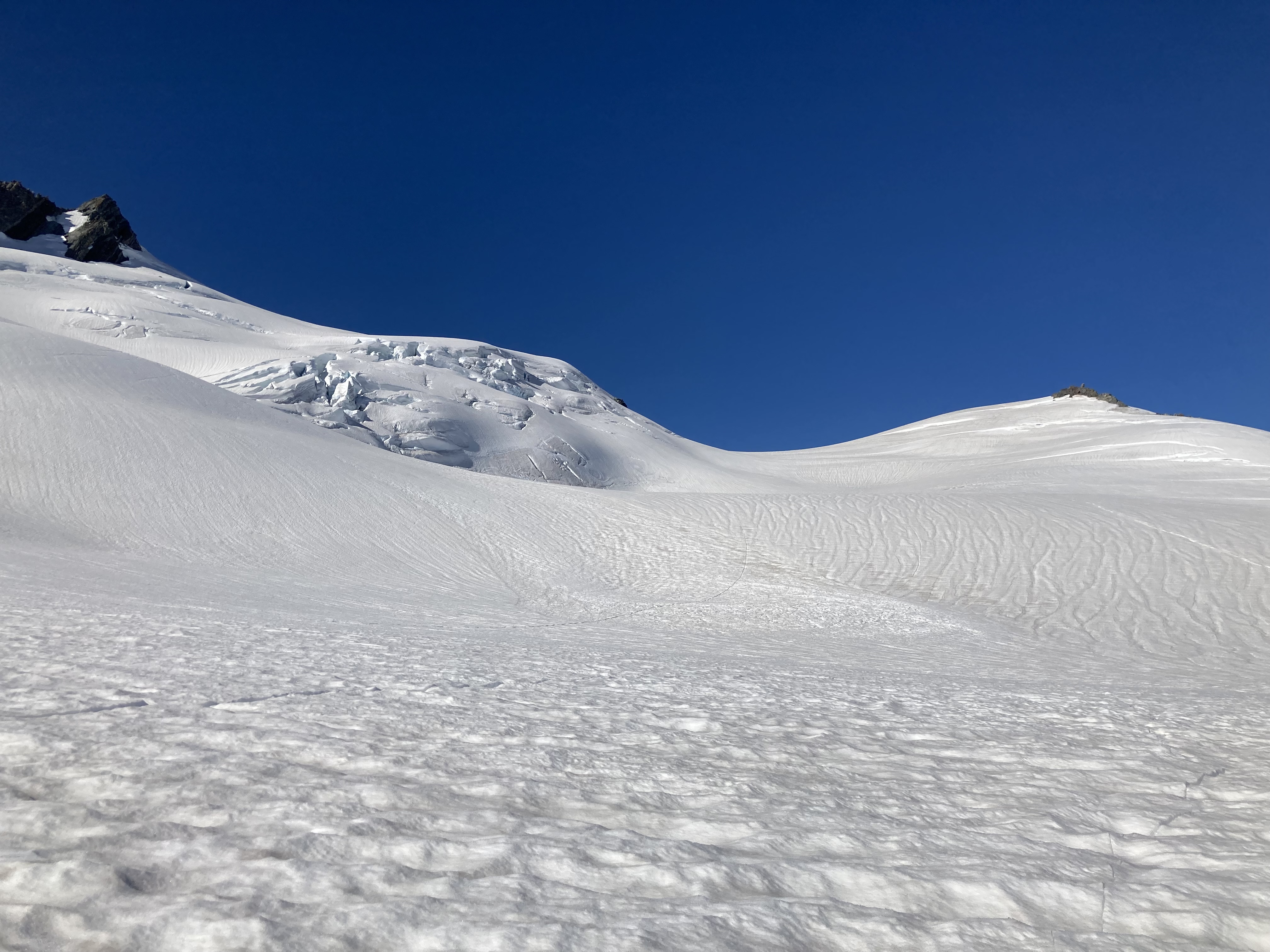 Terrain | Steeper, more rugged ice with dramatic crevasses | Wider glacier valley with smoother, expansive ice fields |